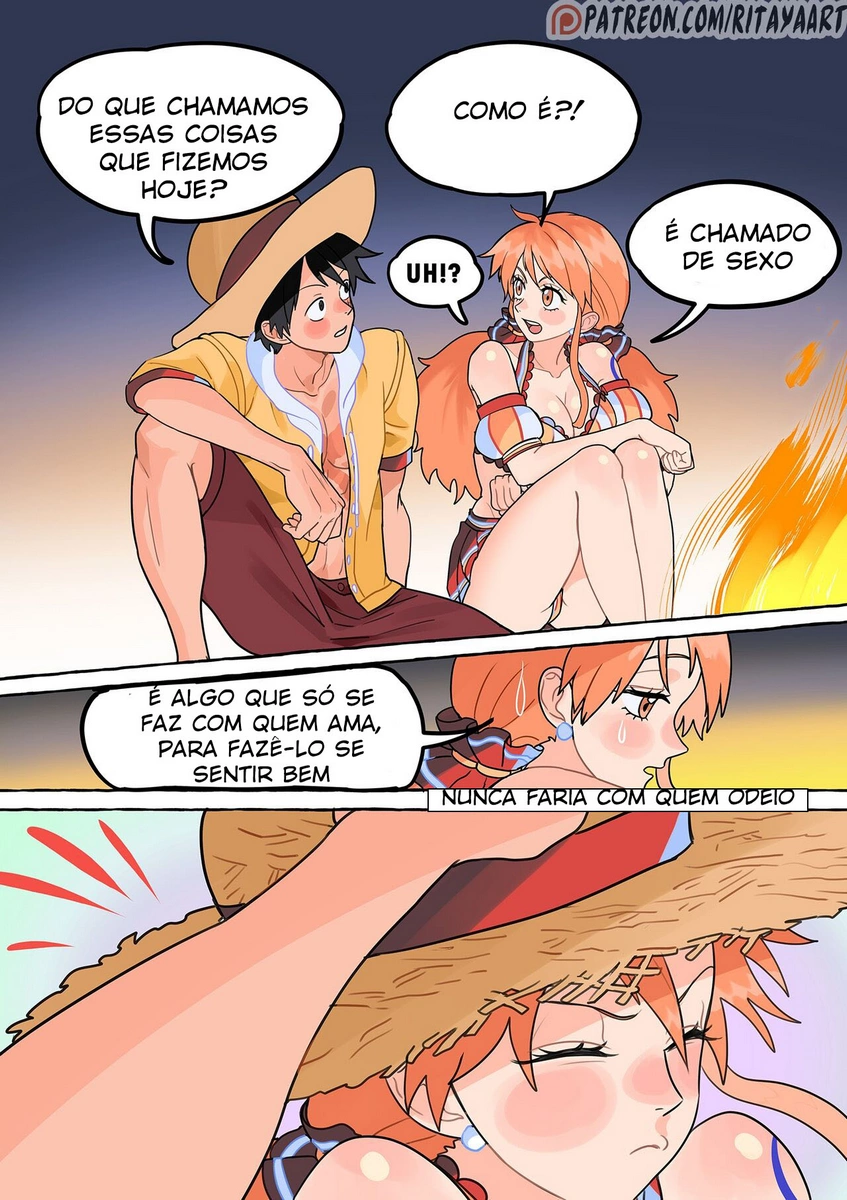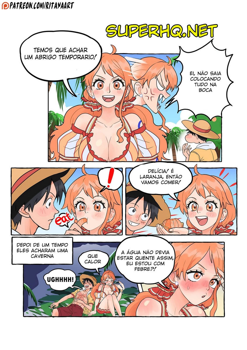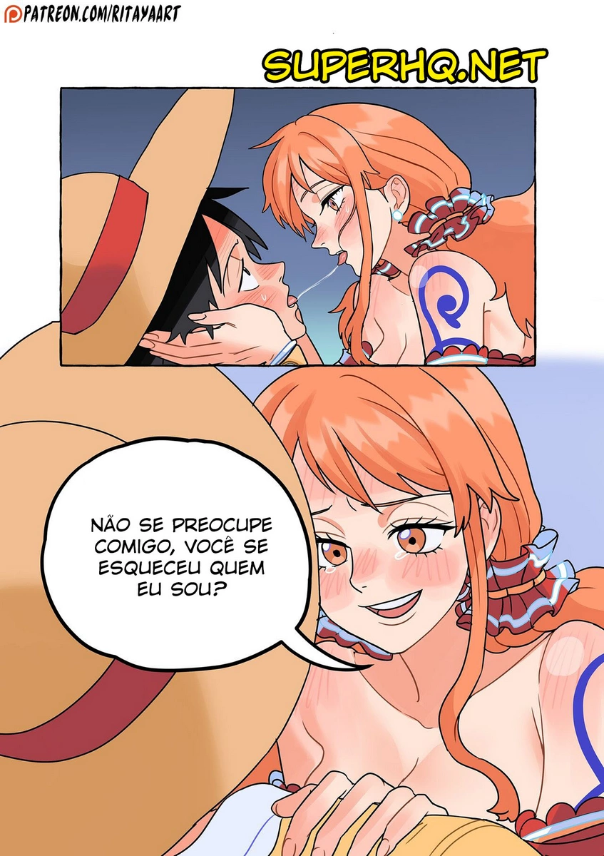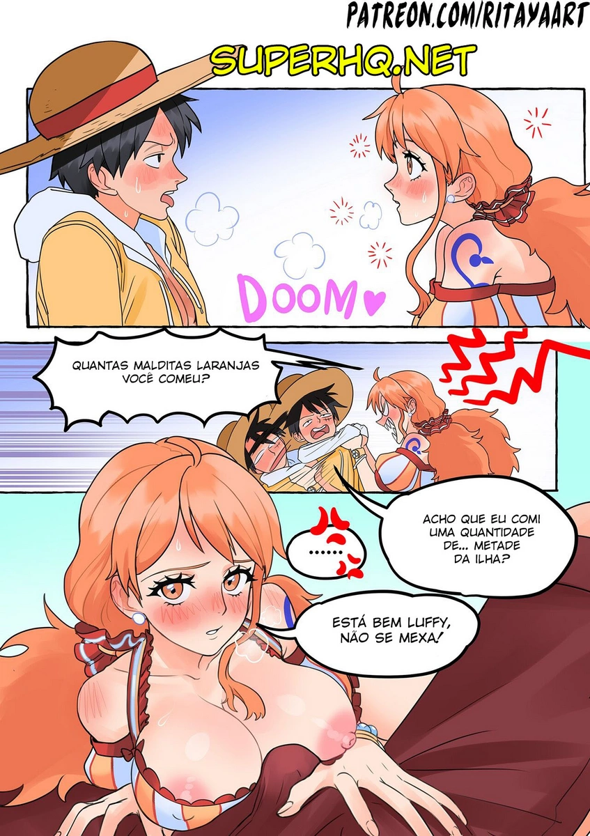 A bela Nami, juntamente com a tripulação, está realizando algumas explorações, e decide que precisa parar numa ilha para um merecido descanso. Ela só não esperava que Luffy do One Piece Hentai comeria uma fruta que o deixaria com tesão na nuca, exigindo ajuda imediata para solucionar o problema. Então ele vai até Nami e fica acariciando sua pica, a gostosa logo se oferece para lhe auxiliar. Então ela introduz a boca em sua grande mamadeira e inicia a amamentação.